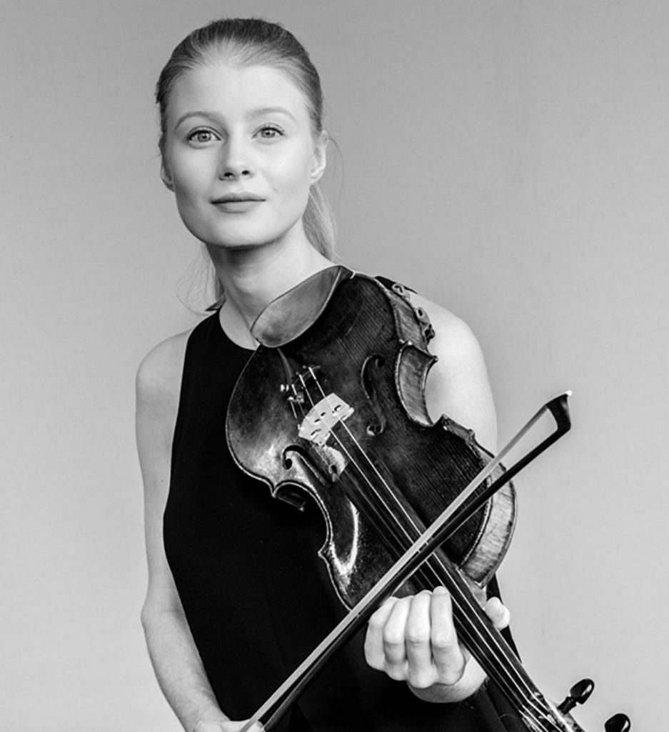 She plays on a G. Grancino 1675 kindly on loan to her by the Deutsche Stiftung Musikleben.